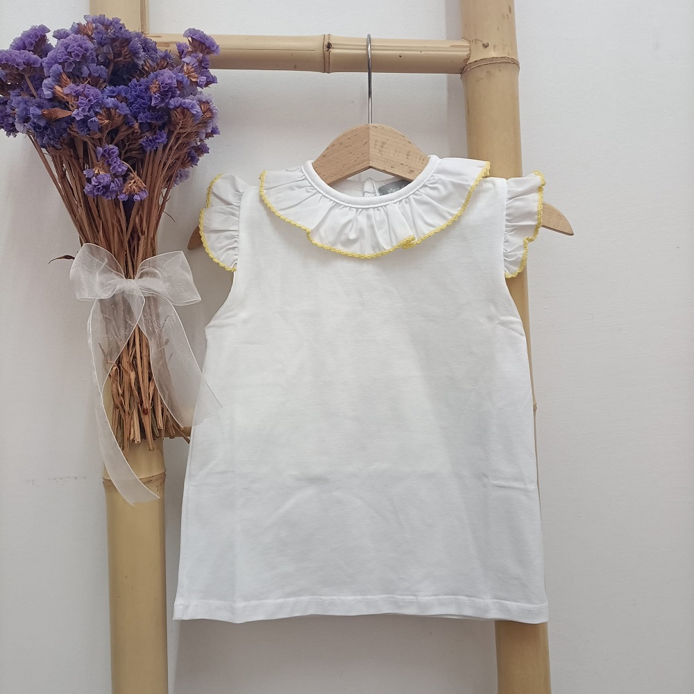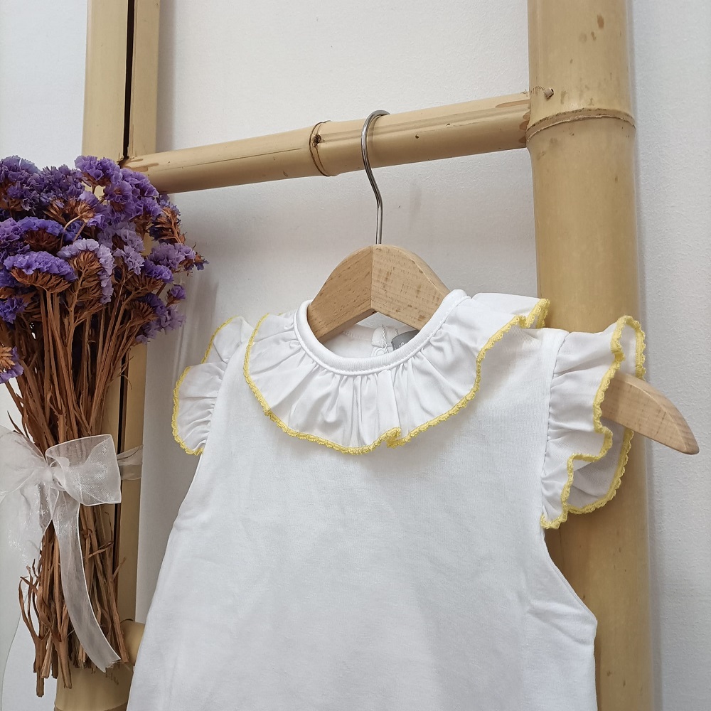 Camisola Golinha Amarelo da marca Lux Júnior produzido em Portugal e confecionado em tecido 100% algodão. Folho na gola e na manga.