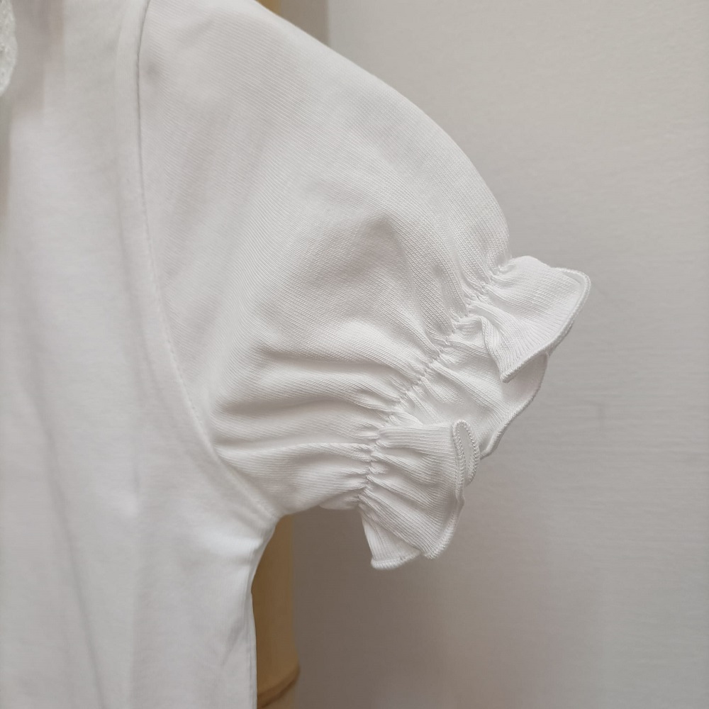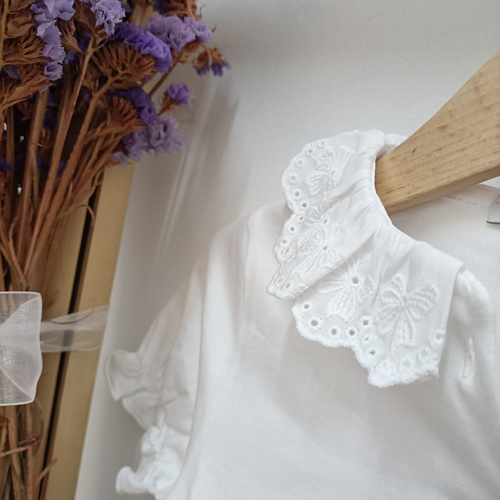 Camisola Golinha Bordado Lux da marca Lux Júnior produzido em Portugal e confecionado em tecido 100% algodão. Folho bordado na gola.