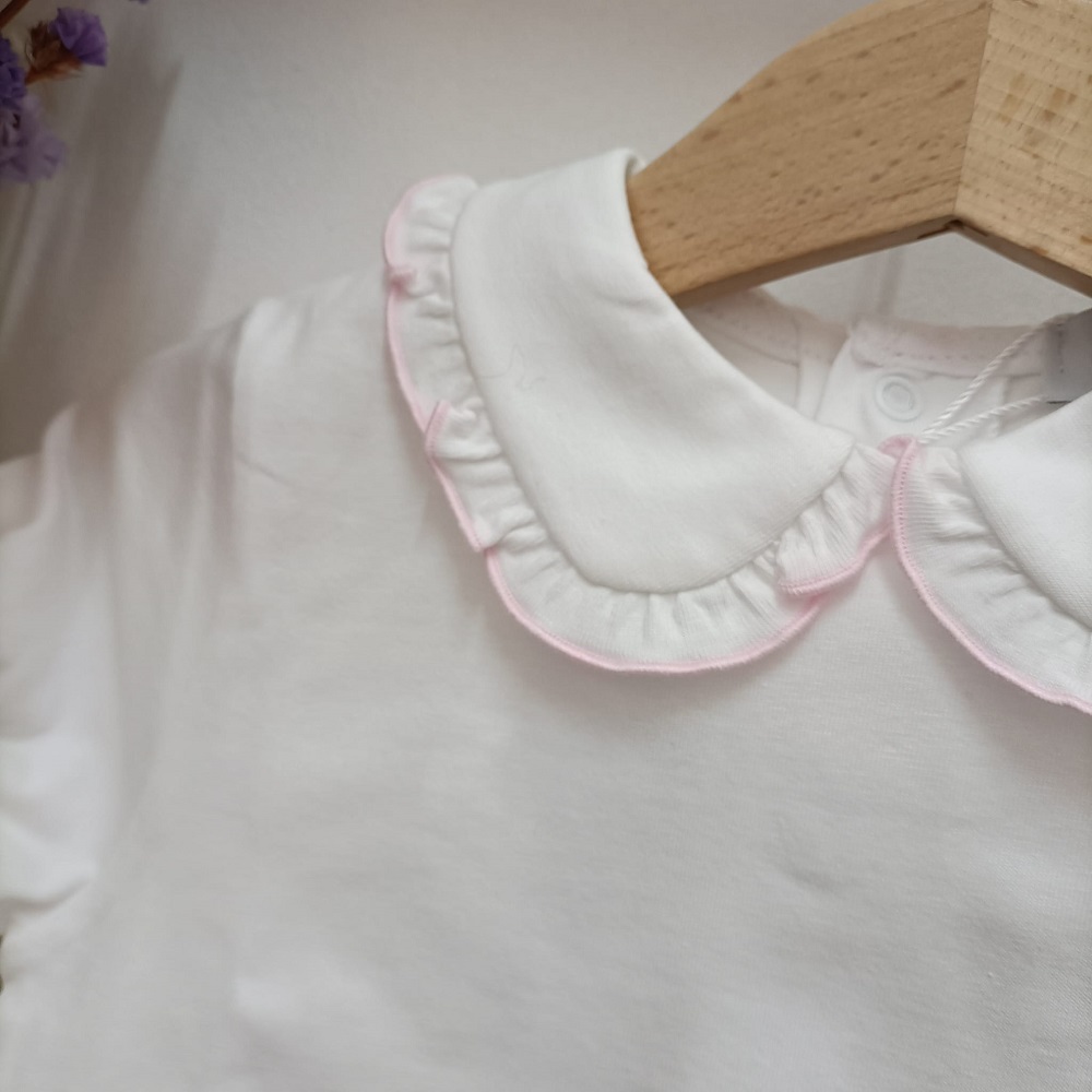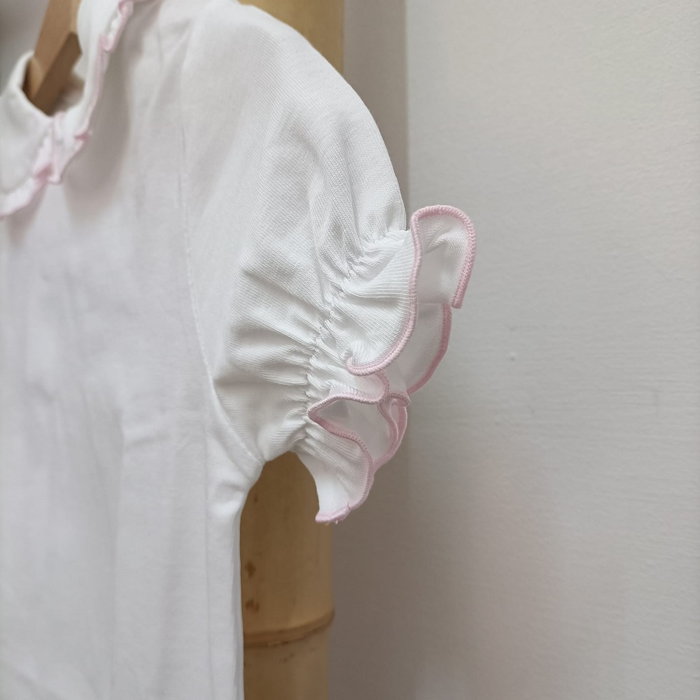 Camisola Golinha Rosa Lux da marca Lux Júnior produzido em Portugal e confecionado em tecido 100% algodão. Folho na gola e na manga.