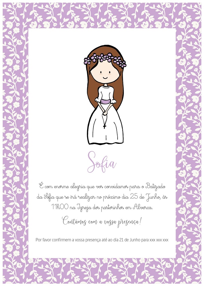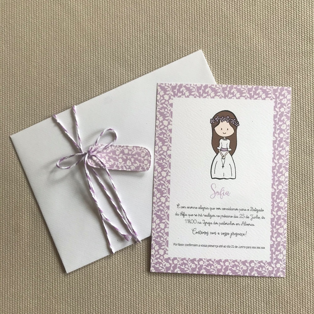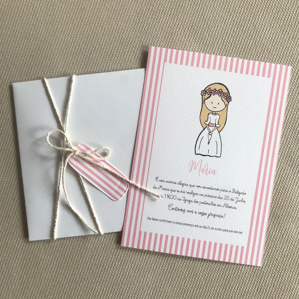 Convites de Batismo e Primeira Comunhão totalmente personalizados para si e as suas necessidades. Inclui o convite, envelope e etiqueta para o nome.