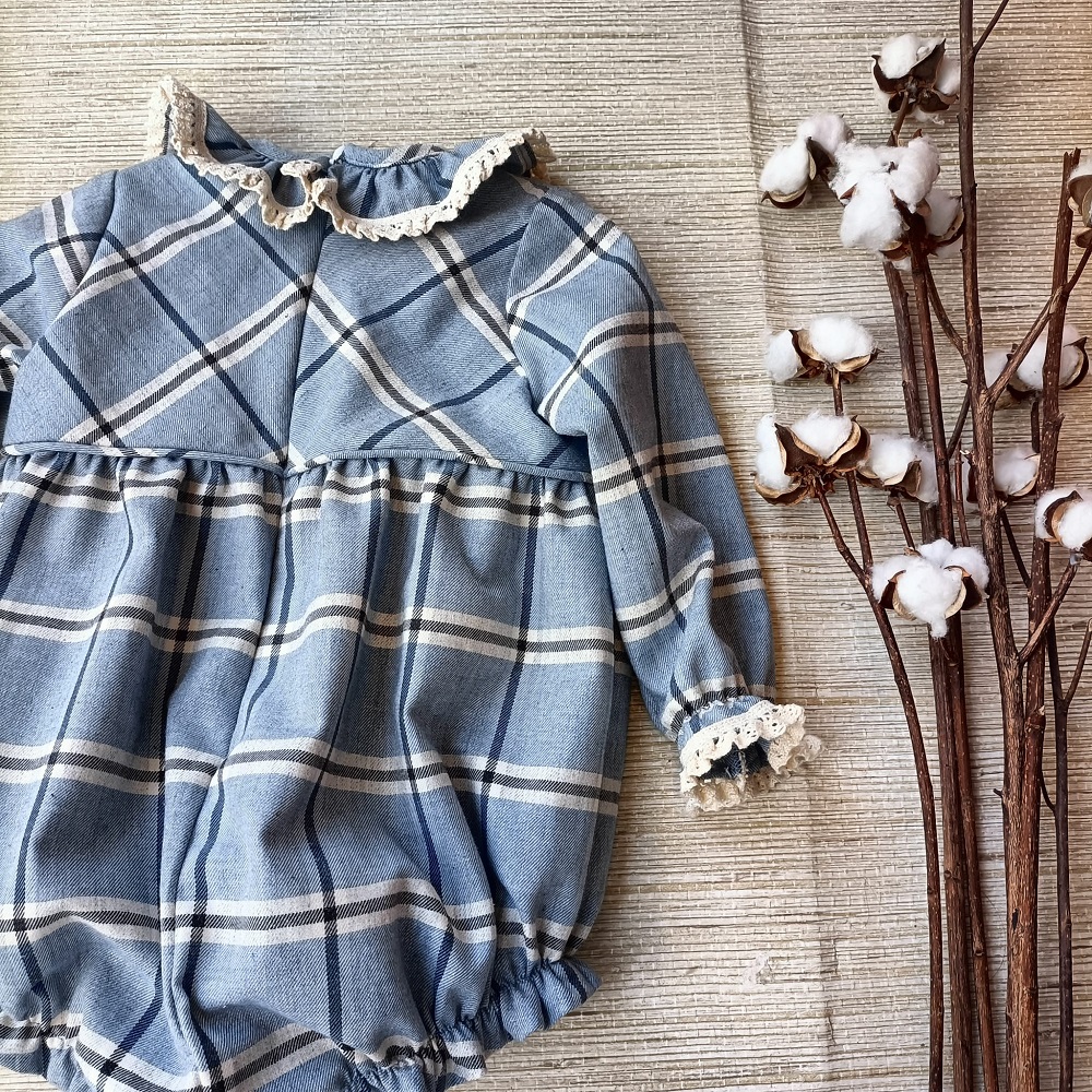 Fofo Adolfo confecionado em tecido 100% algodão. Gola em folho com aplique de renda e manga comprida com elástico no punho e renda. Com abertura entre as pernas e fecho nas costas para facilitar o vestir/ despir.