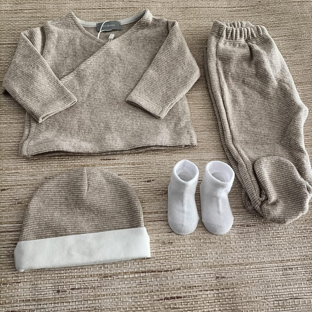 O gorro bege com dobra branca é a escolha perfeita para quem procura um acessório confortável, leve e estiloso para os dias frios. Feito em tecido macio e suave ao toque, oferece conforto prolongado e um design minimalista que combina facilmente com qualquer look. A dobra branca adiciona um contraste moderno e elegante, tornando o gorro ideal os bebés.