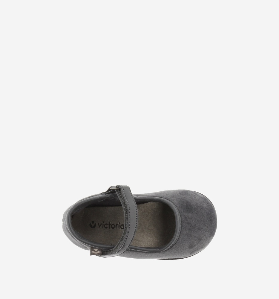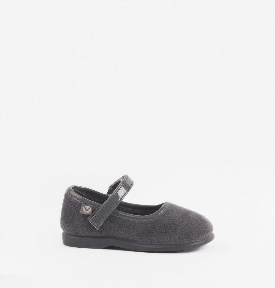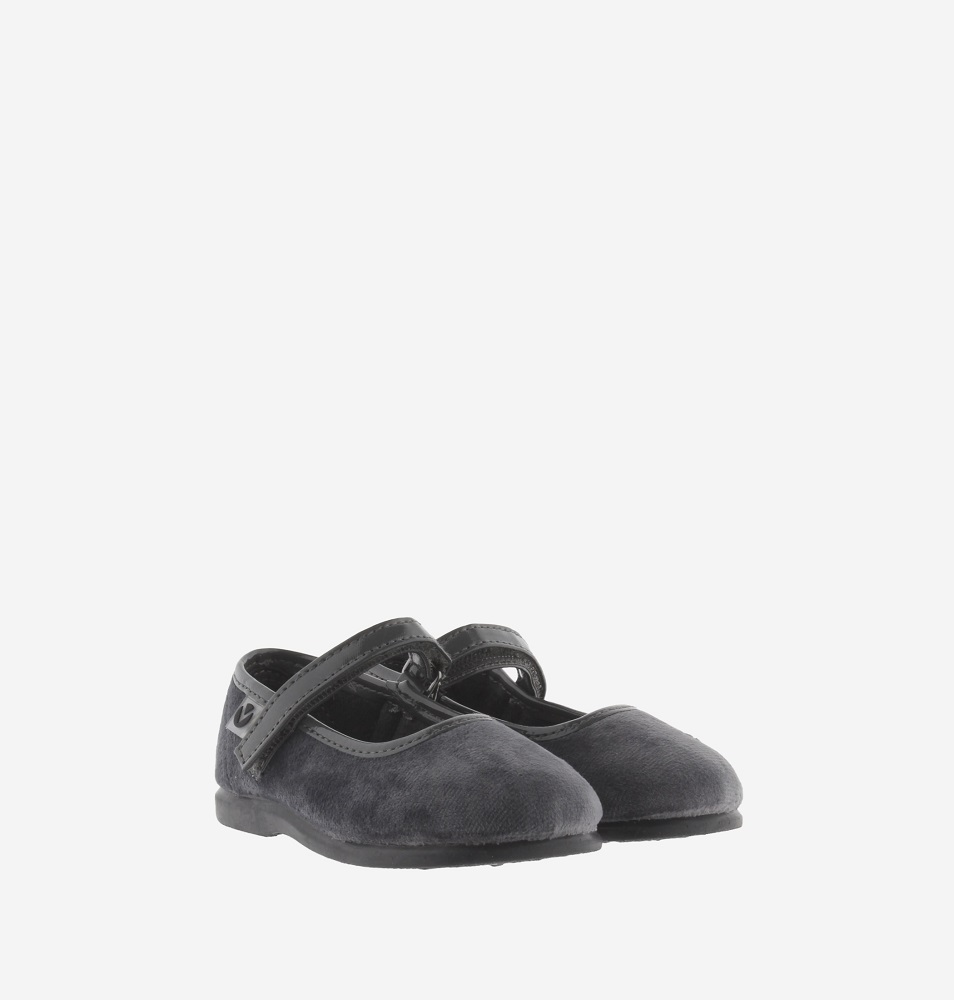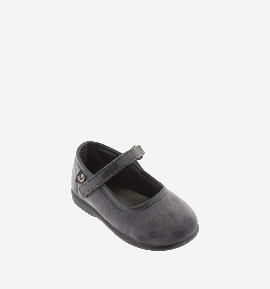 Sabrina Bailarina Veludo Gris para menina. Detalhes em couro verniz e fecho de tira aderente que facilita o calçar e promove a autonomia. Fabricadas em Espanha, possuem uma sola de borracha natural muito flexível que garante conforto e ajuste perfeito para os pés das pequenas. Além disso, têm uma palmilha interna que adiciona conforto extra.