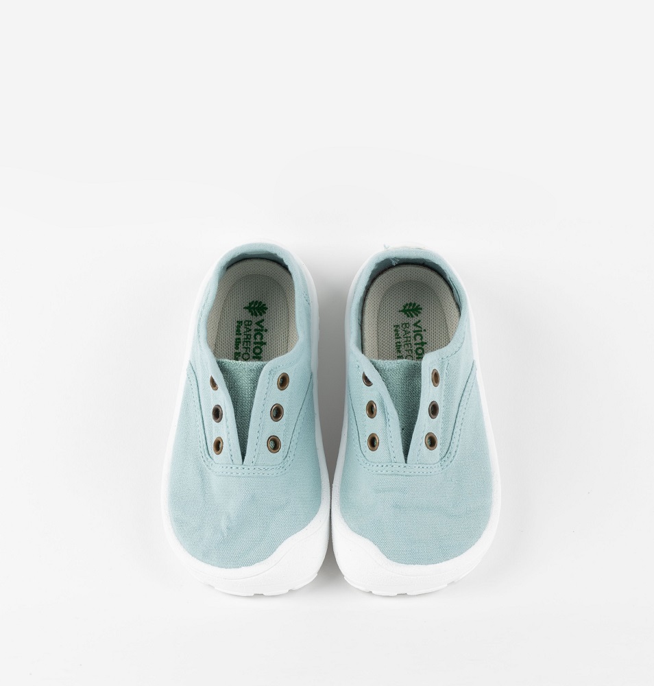 Sapatilhas Victoria Azul do modelo Barefoot, possuem elástico central no peito do pé, que facilita a colocação e proporciona sustentação.