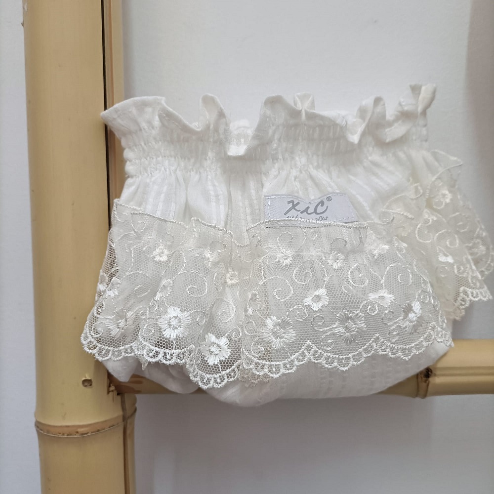 Tapa Fraldas Mandrião confecionado em tecido 100% algodão trabalhado com com uma risca na vertical de forma a dar-me algum relevo. Aplique de renda na parte de trás.