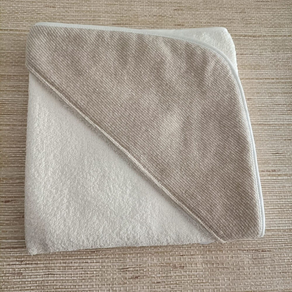 Esta toalha de banho bege com capuz, em tom bege e branco, oferece suavidade e conforto após o banho. Feita com tecido macio e altamente absorvente, é perfeita para manter o bebé quentinho e protegido. O capuz proporciona maior aconchego e ajuda a secar os cabelos com facilidade, enquanto o design neutro e elegante combina com qualquer enxoval.