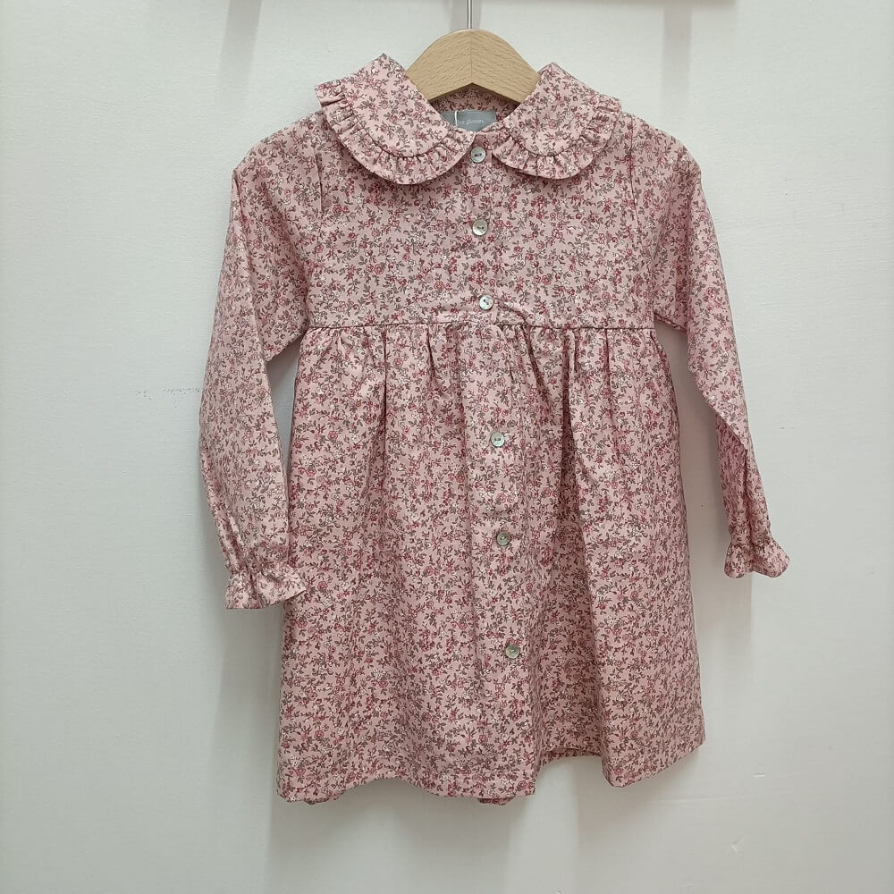 Vestido Floral da marca Lux Júnior confecionado em tecido 100% algodão, com manga comprida e gola boneca. Botões madre pérola a todo o comprimento na parte da frente do vestido.